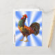 Um galo cantando colorido da obra de arte de caixa de cozinha vintage em um fundo de explosão de estrelas azuis com espaço para o seu endereço de devolução personalizado no verso. Clique em Personalizar para alterar as fontes, cores de fundo e muito mais, até salvar seu design para depois.