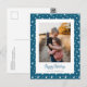 Cartões postais de férias com fotos azuis personalizadas, com estrelas e um belo título de roteiro festivo. Personalize facilmente estes cartões postais azuis de feriado com a sua imagem e um nome de família. O título Personalizado Feliz Natal disponível para dentro da ferramenta design - torne-o visível personalizando ainda mais este modelo. O fundo, o título e o texto podem ser personalizados em qualquer cor.