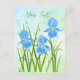 Um cartão com uma bela imagem de íris azuis. O fundo, imagem e texto podem ser personalizados. Arte original de W.B.