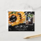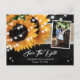 Estes cartões postais de foto de salvar a data do casamento rústico apresentam girassóis em burlap e uma corrida de renda contra um quadro negro, ideais para uma festa de casamento rústica em quadro negro inspirada em girassóis.