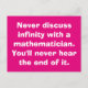 Nunca discuta o infinito com um matemático. Você nunca vai ouvir o fim disso.