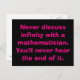 Nunca discuta o infinito com um matemático. Você nunca vai ouvir o fim disso.