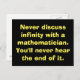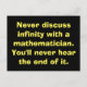 Nunca discuta o infinito com um matemático. Você nunca vai ouvir o fim disso.