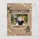 Cartões Postais de Salvar a Data com Foto de Palmeira Vintage - personalize com uma foto sua. O design apresenta um fundo impresso vintage com luzes de corda, palmeiras e elementos de texto decorativos. Veja produtos correspondentes neste design na coleção encontrada nesta página.
