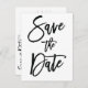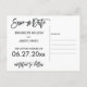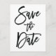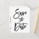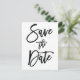 Cartões postais de Save the Date de casamento em branco e preto com texto preto personalizado impresso em fundo branco