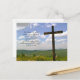 Cartões postais de páscoa com escritura e uma foto de cruz de madeira. A escritura na frente é do livro de Luke e pode ser mudada. Coloque as informações dos serviços de Páscoa no verso e use-as para convidar os participantes. Fotografia de uma cruz numa colina foi tirada em Bristol, New Hampshire.