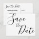 Cartões postais de casamento de simples roteiro Salve a data com texto preto mutável (você pode alterar o texto) impresso em fundo branco
