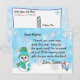 pássaro azul e uma carta personalizada do Papai Noel na frente. O verso tem um espaço para a criança escrever sua lista de desejos de Natal.