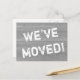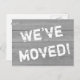 Cartões postais em movimento com o painel de madeiras de olhar desapontado. Textura de fundo do painel de madeira. Texto de movimentação personalizado; nós movemos! Adicione seu novo endereço no verso. Cartões engraçados modernos para a nova casa ou localização de negócios.