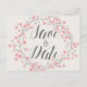 Cartões postais de casamento romântico floral Salve a data com bela coroa floral rosa e texto personalizável - você pode alterar o texto
