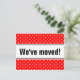 Cartões postais movendo-se | bolinhas vermelhas e brancas. Texto personalizado em movimento; Nós nos movemos! Adicione seu novo endereço no verso. Cartões modernos para casa e negócios.