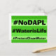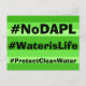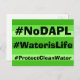 #NoDAPL, #WaterisLife e #ProtectCleanWater escritas sobre um fundo de diferentes tons de verde. #NoDAPL representa o movimento em oposição à construção do gasoduto Dakota Access. Muitos gasodutos vazam, o que leva à contaminação do abastecimento de água e à destruição do solo em toda a vida. É imperativo que protejamos a água potável. #ProtectCleanWater