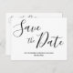 Cartões postais simples de salvar a data do casamento com texto preto de script mutável (você pode alterar o texto) impresso em fundo branco