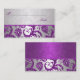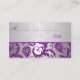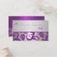 Este cartão de lugar prateado e roxo corresponde ao convite de casamento mostrado abaixo.