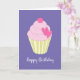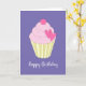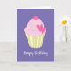 Ilusima Love Heart Cupcake roxo Cartão de Aniversário projetado por Melanie Jensen. O cartão de aniversário desta garota fofa também pode ser personalizado para ser um cartão de Chá de fraldas de menina. O texto "Parabéns" pode ser alterado para "PARABÉNS".
