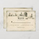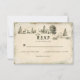 Cartão RSVP de casamento de acampamento russo com local de acampamento cênico - mapa. Cartão de resposta único e divertido para o casamento na floresta, o casamento na montanha ou o fim de semana de acampar. Florestas, montanhas distantes, belo casal de veados, pequeno barco no lago, velha placa de estrada de madeira e sua tenda perto da fogueira, para calor e luz à noite. — Se você pressionar PERSONALIZAR TI, você poderá alterar o estilo da fonte, a cor, o tamanho, movê-lo etc. ele lhe dará mais opções!
