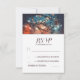 Cartões RSVP de casamento russos ao ar livre com ramos de árvore azul e coral/coral de pêssego com luzes.