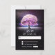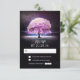 Cartão RSVP de casamento russo com carvalho velho e lanternas roxas.