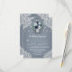 Cartões RSVP de Casamento de Mason Jar de Dusty Blue Country - apresentam um fundo azul empoeirado ou azul de ardósia/aço com rendas brancas impressas, luzes de cordas e um jarro de mason cheio de elementos florais, verde e muito mais. Exibir a coleção correspondente nesta página para localizar itens de coordenação.