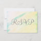 Cartões RSVP Românticos de Casamento com uma tela plana de fundo de lavagem de aquarela tropical rosa, verde, amarela e azul suave para inserir com seus convites formais. Mostrado no elegante Linen Paper. Personalize os detalhes especiais. Adorável para um casamento de verão. Design de Arte Original por TamiraZDesign.