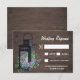 Cartões RSVP de Casamento de Lanterna Rústica da Madeira Rústica Suculente - apresenta um antigo fundo de madeira de celeiro com uma lanterna preta cheia de suculentos de aquarelas e flores silvestres. Consulte os produtos design correspondentes encontrados na coleção nesta página.