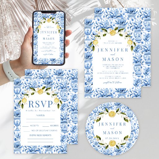 Blue tiles lemon Italian Mediterranean weddingCriado por Ramune Freze