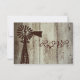 Um cartão de resposta de casamento russo com um design de moinho de vento fazenda num fundo de tábuas de madeira em cascata em apuros impressão. A design do moinho de vento também está do lado de trás com as palavras "RSVP". Completamente personalizável com seus próprios detalhes. Aqui está o conjunto de convites de casamento personalizados correspondente: