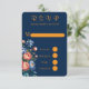 Uma ilustração aquosa de um buquê de pénia brilhante em azul marinho e laranja. O buquê consiste de peônias com flores grandes e redondas e folhas verdes profundas. O fundo é marinho azul. Convites e material de casamento correspondentes estão disponíveis neste conjunto de coleções.