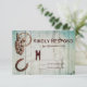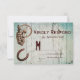 Um cartão de resposta de casamento de um país rústico sobre um fundo de tábuas de madeira de celeiro em apuros com uma bomba d'água de barril, roda de vagão e ferradura. Completamente personalizável com seus próprios detalhes. A parte de trás do convite tem "RSVP". Aqui está o conjunto de convites de casamento personalizados correspondente: