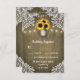 Cartões RSVP de Casamento de Lace Sunflower Mason Jar - apresentam um fundo de madeira de casca única com luzes elegantes de rendas e de cordas brilhantes. Esta design também apresenta um cheio de jarro de girassóis e o hálito do bebê. O jarro de mason é decorado com iniciais que você pode mudar para aquelas de sua escolha.