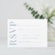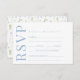Explore o romance contemporâneo com essas placas de resposta RSVP personalizadas para primavera ou casamentos de verão. Adorados com lindas flores azuis-claras e folhas verdes, estas cartas incorporam um design botânico e elegante. Elevem sua experiência de RSVP de casamento com este toque refinado.