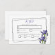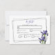 Este elegante design floral apresenta íris roxos. Os belos íris roxos com seus caules verdes são colocados sobre uma borda geométrica fina. O título é a cor correspondente ao roxo da flor da íris. No verso é utilizada uma imagem maior das elegantes flores da íris. Este é o perfeito design de cartão de aceitação RSVP de casamento floral ideal para qualquer tema de casamento. A Elegante design do cartão de resposta do casamento da íris com elementos modernos. Os convites de casamento e outros artigos de papelaria também estão disponíveis.