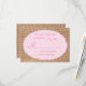 Este convite de casamento rústico é perfeito para qualquer casamento. Ele apresenta um fundo burlap impresso rustic. A inscrição em cima de um oval rosa que tem bordas torcidas. Perfeito para um casamento no campo ou no celeiro. Basta adicionar sua data de RSVP ao cartão. A pá é apenas um design impresso. Não é um tecido de burlap. Perfeito para o casal do oeste que quer incorporar burlap no seu casamento. Se você precisar alterar o tamanho ou a fonte do texto, poderá usar o botão "Personalizar" para mover as coisas, redimensionar o texto e personalizá-lo completamente. Caso contrário, se você gosta do layout e da fonte como ele é, então apenas insira seus detalhes de casamento nos pontos de modelo. Esta placa RSVP corresponde a estes convites de casamento: