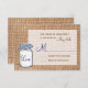 Este cartão de resposta RSVP de convite para casamento é perfeito para um casamento no país. Ele apresenta uma design de burlap impressa com um pote de mason que um arco gêmeo amarrava ao seu redor. O jarro de mason é uma tonalidade de cor azul, e o texto da placa RSVP tem sotaques de cor azul semelhante. Estas são excelentes para noivas com cores azuis de casamento e que estão tendo um casamento em estilo country e decorando seu casamento e sua recepção com jarros de mason. Estes cartões de resposta do casamento são projetados para combinar com estes convites de casamento de mason jar de burlap no campo: Blue Mason Jar Wedding RSVP Cards