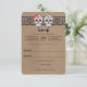 Cartões RSVP de Casamento Rustic Kraft & Lace Sugar Skull que se coordenam com o meu convite encontrado no compro. Estas são perfeitas para um tema de crânio incluindo Dia dos Mortos / Dia de los Muertos ou casamento de halloween! Para qualquer cor e/ou outras personalizações, envie um e-mail para articulosdepapel@gmail.com ou o link "Perguntar ao Designer" encontrado no meu compro. Obrigados!