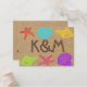 Os cartões de posição apresentam estrelas-vivas, vieiras e poços em vermelho, azul, amarelo, verde, rosa e roxo, com texto de amostra em castanho sobre um fundo de textura falsa de canvas.