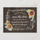 Cartões rústicos de girassol para salvar a data com aquarela - apresenta um fundo de madeira de celeiro rústico country com girassóis pintados à aquarela e outros elementos florais sobre uma moldura de aquarela. Veja a coleção completa correspondente nesta página para completar as necessidades do seu evento.