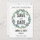 Moderno e romântico guarde o cartão de data. Personalize com seus nomes, data e cidade. Traz uma dica de romance com a letra do script e o eucalipto suave, enquanto se mistura em um sentimento moderno com a letra do bloco.