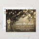 Cartões salve a data de Árvore de Carvalho Esculpida Russo Vintage - apresenta um lindo carvalho sobre um fundo angustiado vintage com luzes de cordas. Você pode "esculpir" o coração às iniciais de sua escolha. Veja toda a coleção de design correspondente nesta página.