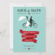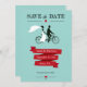Trendy Cartões salve a data com noiva e noivo em uma bicicleta tandem. Design de colheita divertida com um banner vermelho em um fundo aqua. Também disponível em outras cores. Obter a correspondência salvar os carimbos de data abaixo: