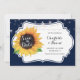 Casamento floral russo salve o cartão de data com girassol em uma placa branca e fundo azul marinho.