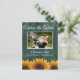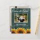 Cartões salve a data Russos de Girassol de Madeira - Cartões postais - personalizem-se para uma foto própria. Design apresenta um fundo de madeira de turquesa angustiada com girassóis rústicos no fundo.