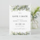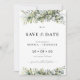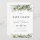 Cartões salve a data de plantas verdes. Este convite de casamento na moda e elegante apresenta um lindo verde floral de cor aquosa, pintado manualmente, eucalipto floral. Encontrar itens correspondentes na Coleção de Flores Frescas de Plantas Herbais Genéricas