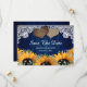 Casamento floral azul-marinho salve o cartão de data com girassóis, hálito de bebê e verde sobre um fundo azul-marinho de floresta. Itens correspondentes disponíveis.