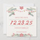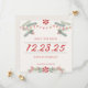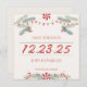Avise seus convidados para marcar seus calendários da maneira mais alegre! Este cartão de identidade festivo apresenta florais vermelhos e verdes vibrantes, verde de férias e tipografia elegante para um toque quente e caprichoso. Perfeito para o inverno e casamentos de Natal, este cartão dá o tom para a sua celebração com o tema de feriado com alegria e charme. Totalmente personalizável para corresponder ao seu estilo.