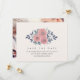 Nossas cartões salve a data subestimadas e elegantes estão se enterrando com elegantes florais de aquarela em tons chicos de rosa-pincel e azul-macio. Design apresenta um spray de flores de papoila cercado por folhas e botões em verduras, cinzentos e azuis macios. Adicione seus nomes e detalhes chave do casamento à frente, e adicione sua foto favorita do noivado ao verso.