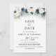 Cartões salve a data de rosa marinho azul e branca. Este na moda e elegante chá de casamento apresenta lindas cores d'água Marinho Blue e White Roses pintadas manualmente. Localize itens correspondentes na Coleção de Rosa Azul e Branco do Marinho.