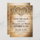 cartões salve a data de madeiras rústicas com encravamento cardíaco e tipografia country.