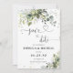 Cartões salve a data verdes. Este na moda e elegante salvamento do convite de data apresenta um belo verde de cor d'água pintado manualmente. Localizar itens correspondentes na Coleção Watercolor Eucalyptus Floral Greenery_HB1.