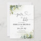 Cartões salve a data verdes. Este na moda e Chá de panela elegante apresenta uma linda cor d'água pintada manualmente Greenery. Localizar itens correspondentes na Coleção Floral Eucalyptus Greenery.